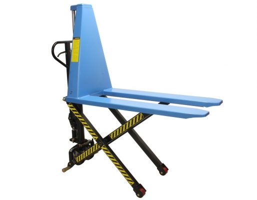 Este porta paletes de elevação elevada eleva as paletes à altura de trabalho ideal.